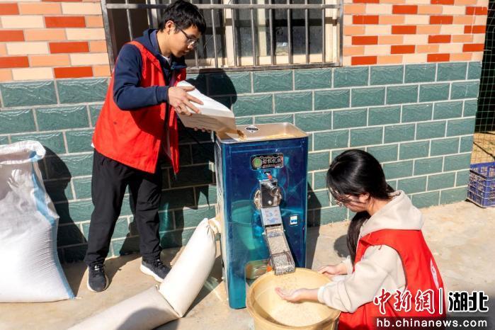 今年6月,湖北大学生科院“水稻科普劳动教育基地”在长江新区水稻育种基地挂牌成立。在专门划出的一片稻田里,20余名学生现场学习插秧,亲身感受泥土的温度。暑期来临,师生通过群聊照片持续关注水稻生长。10月秋收,师生重返水稻基地完成收割、脱粒等劳作,最终收获稻谷150斤。11月,师生们再次集结,将晾晒后的稻粒经脱壳处理。12月,学院师生们经过精心设计、包装,将收获的稻米一半包装成袋赠送给师生,一半通过食堂免费发放。