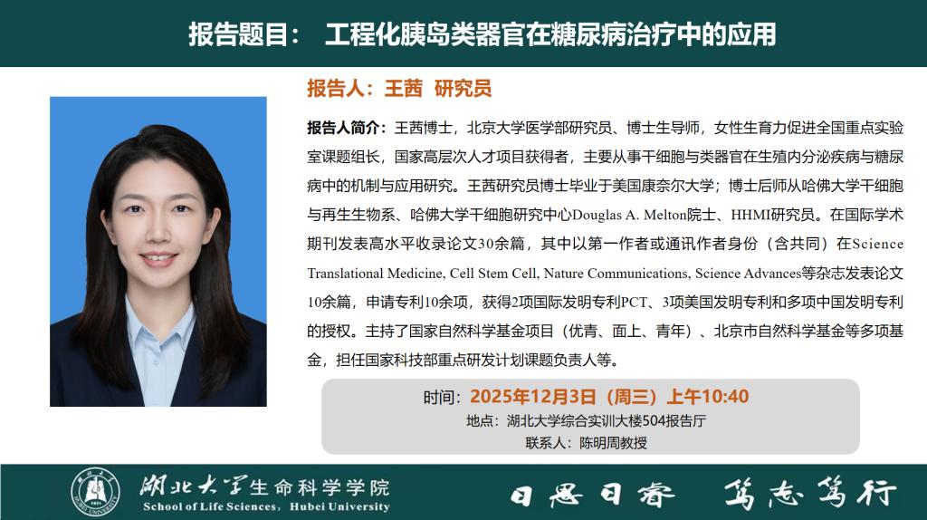 学术报告:工程化胰岛类器官在糖尿病治疗中的应用