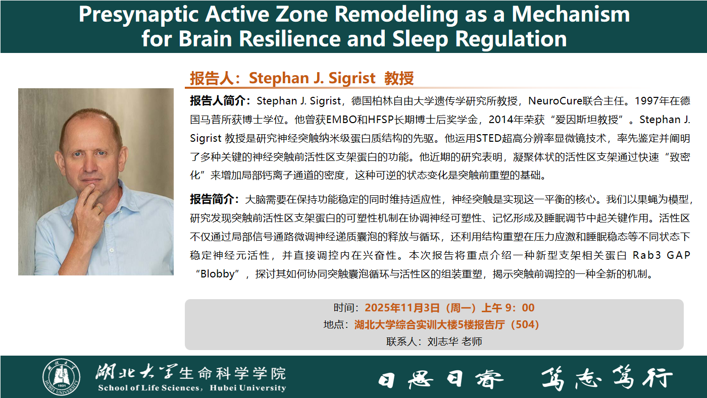 报告人 Stephan J. Sigrist 时间 2025年11月3日(周一)上午 9:00